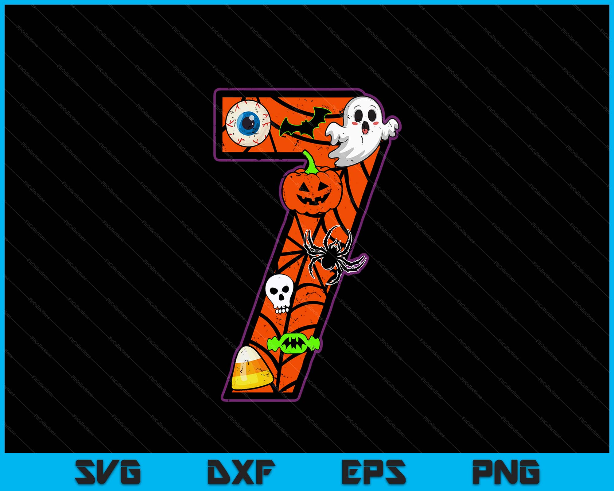 7th Birthday Halloween 7 Year Old Ghost Costume Boo Funny SVG PNG Digital Printable Files