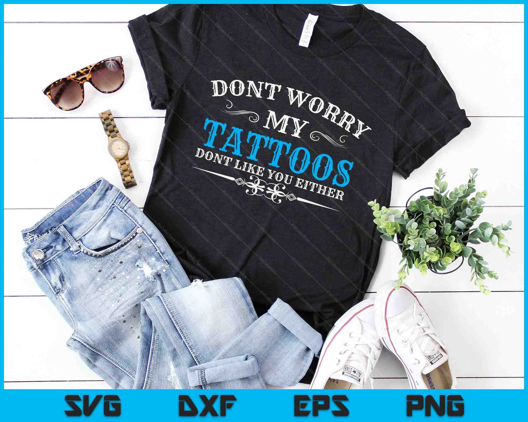 Maak je geen zorgen, mijn tatoeages vinden je niet leuk, grappige Tattoo SVG PNG digitale snijbestanden