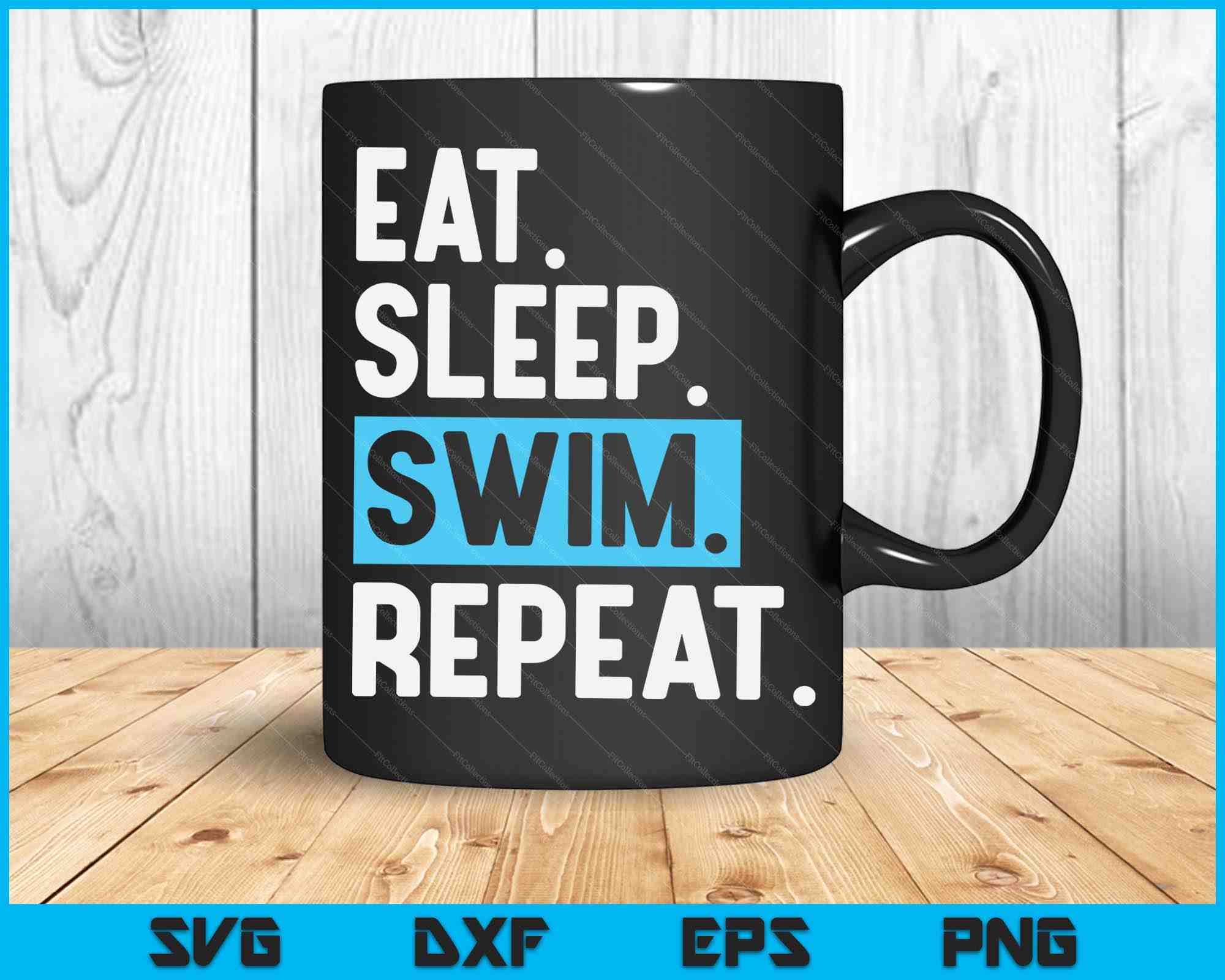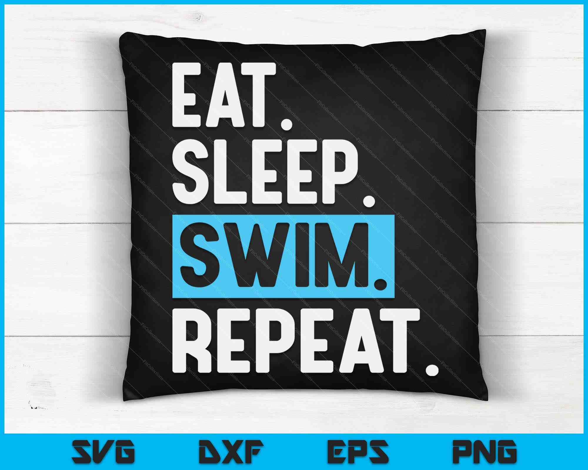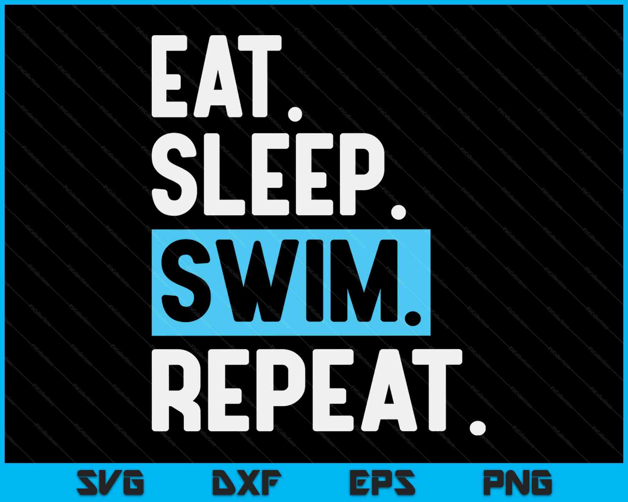 Eet slaap zwemmen herhaal grappige retro vintage zwemmen zwemmer SVG PNG digitale snijbestanden