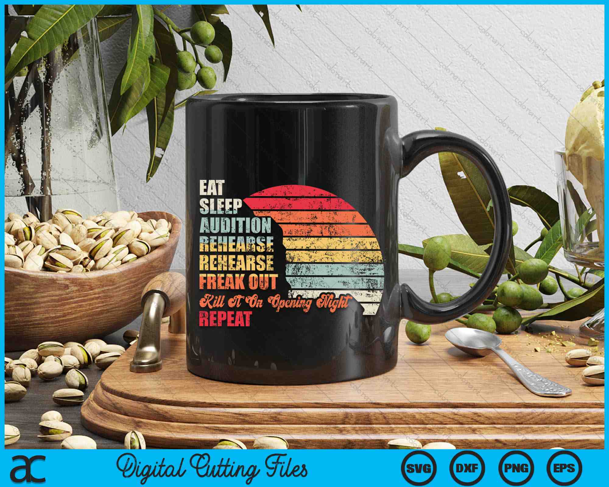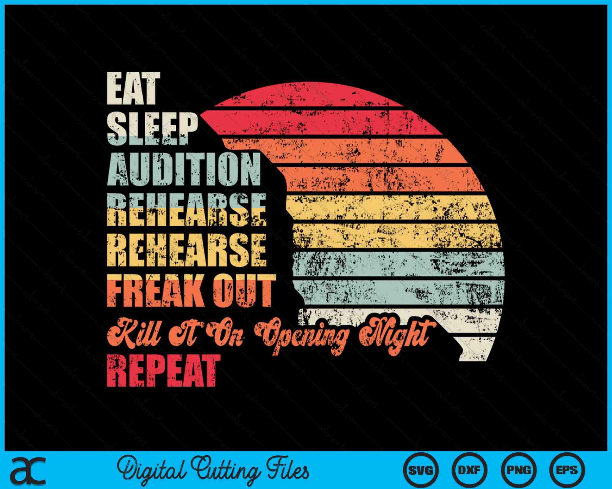 Retro Vintage Theater Geek Muzikale Leven Eet Slaap Theater SVG PNG Digitale Snijbestanden
