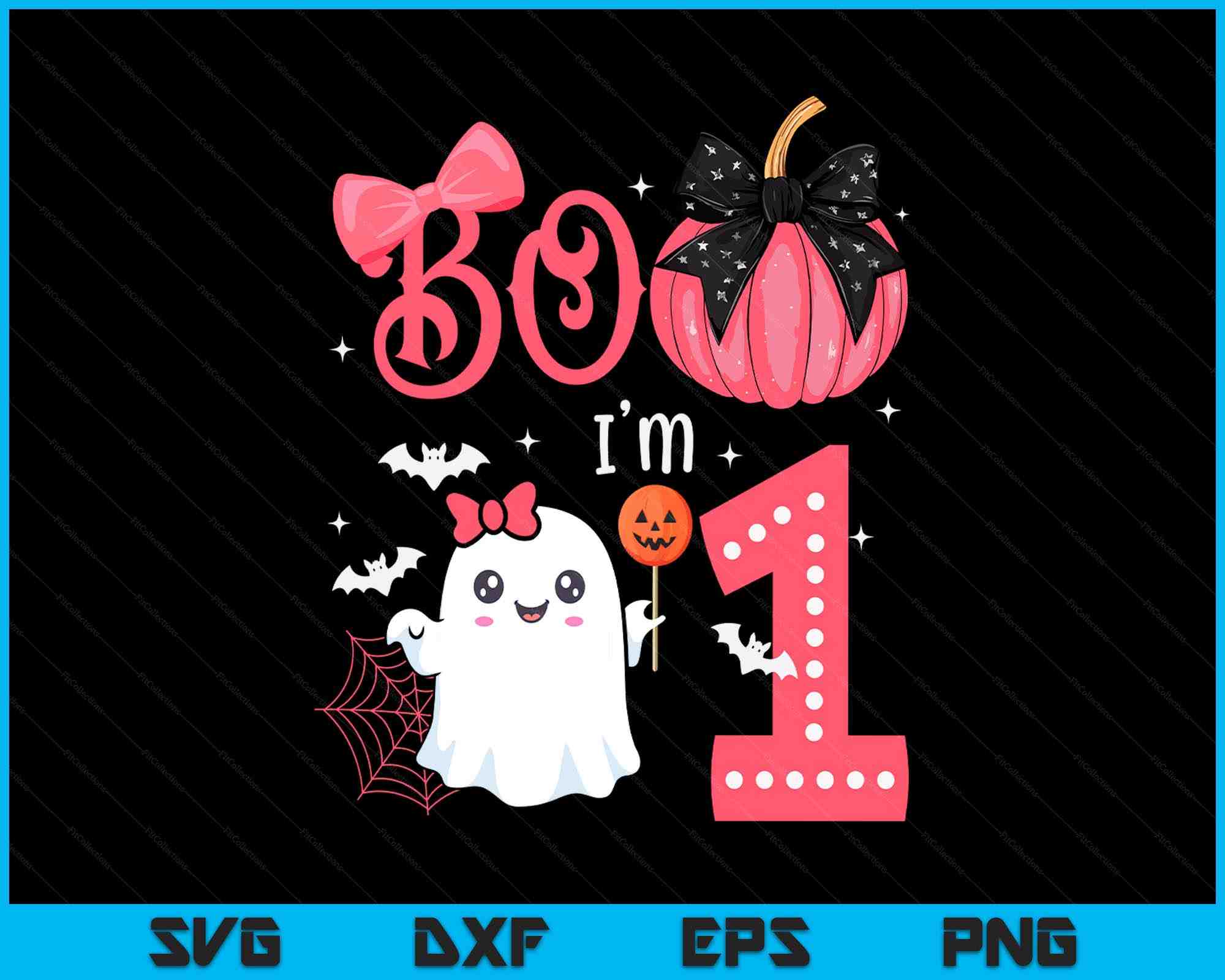 Boo I'M 1 Years Old Ghost 1st Birthday Halloween Ghost Girls SVG PNG Digital Printable Files