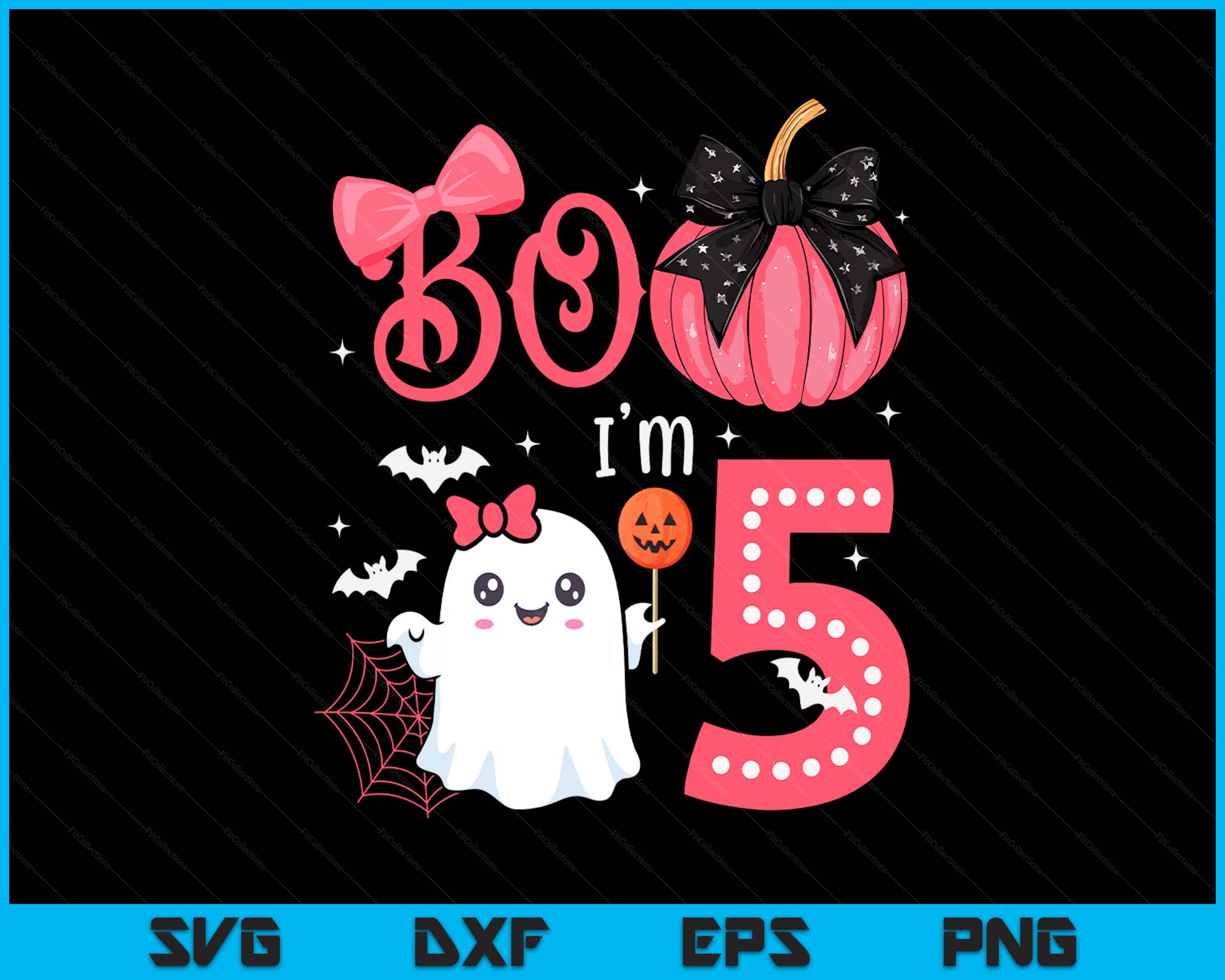 Boo I'M 5 Years Old Ghost 5Th Birthday Halloween Ghost Girls SVG PNG Digital Printable Files