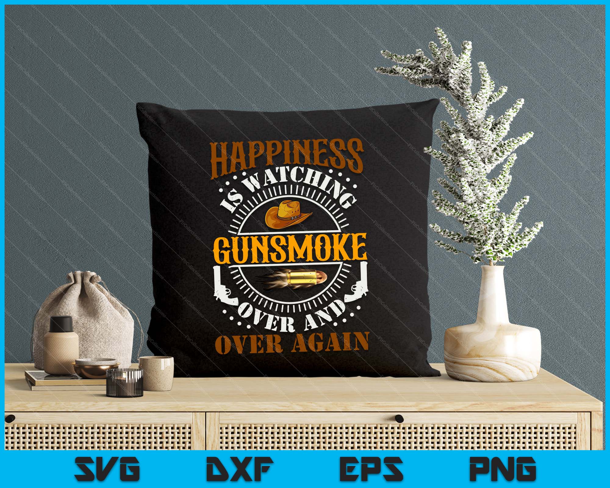 Happiness Is Watching Gun-Smoke Over And Over Again Cowboys SVG PNG Digital Printable Files