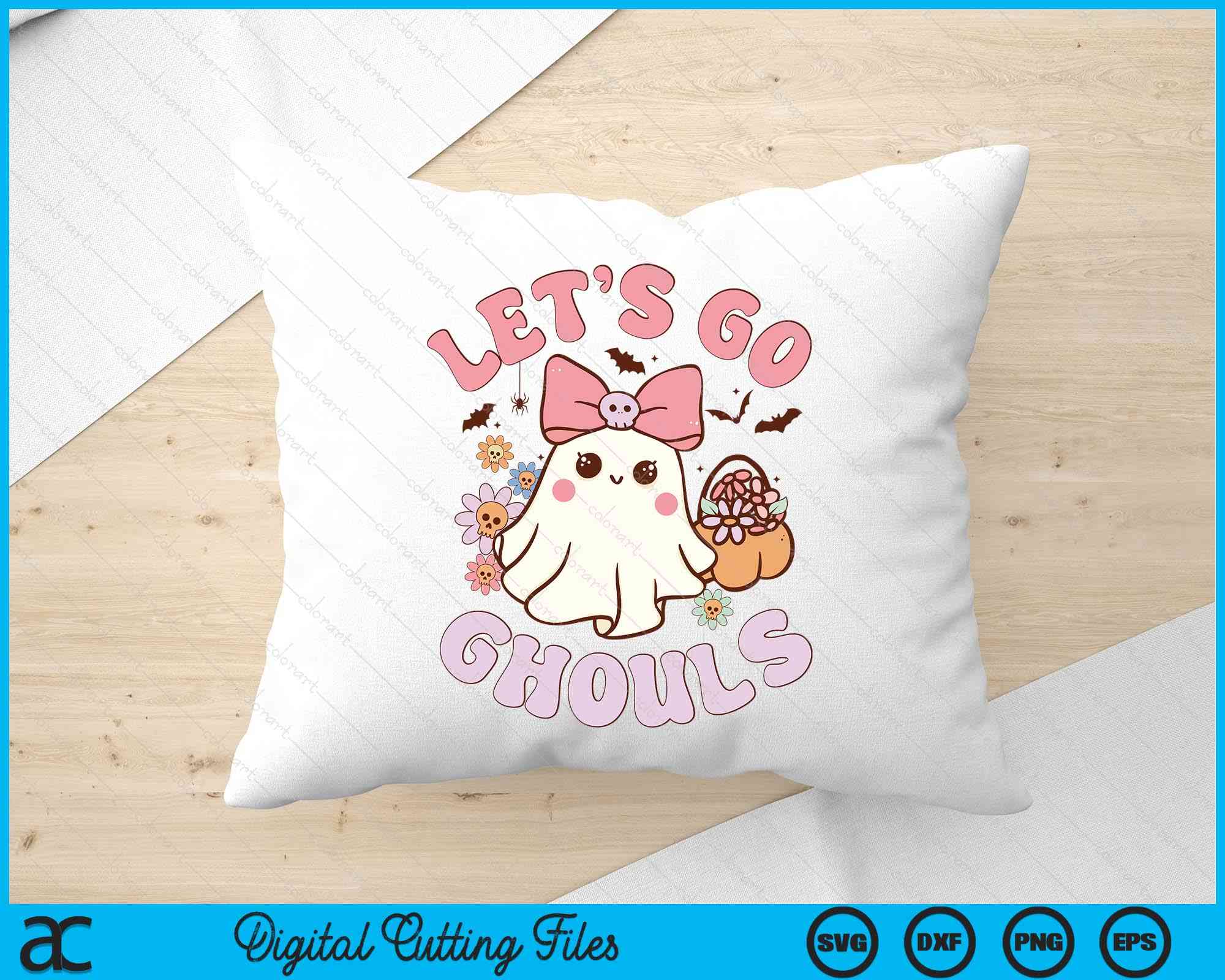 Let's Go Ghouls Cute Ghost Retro Halloween SVG PNG Digital Printable Files