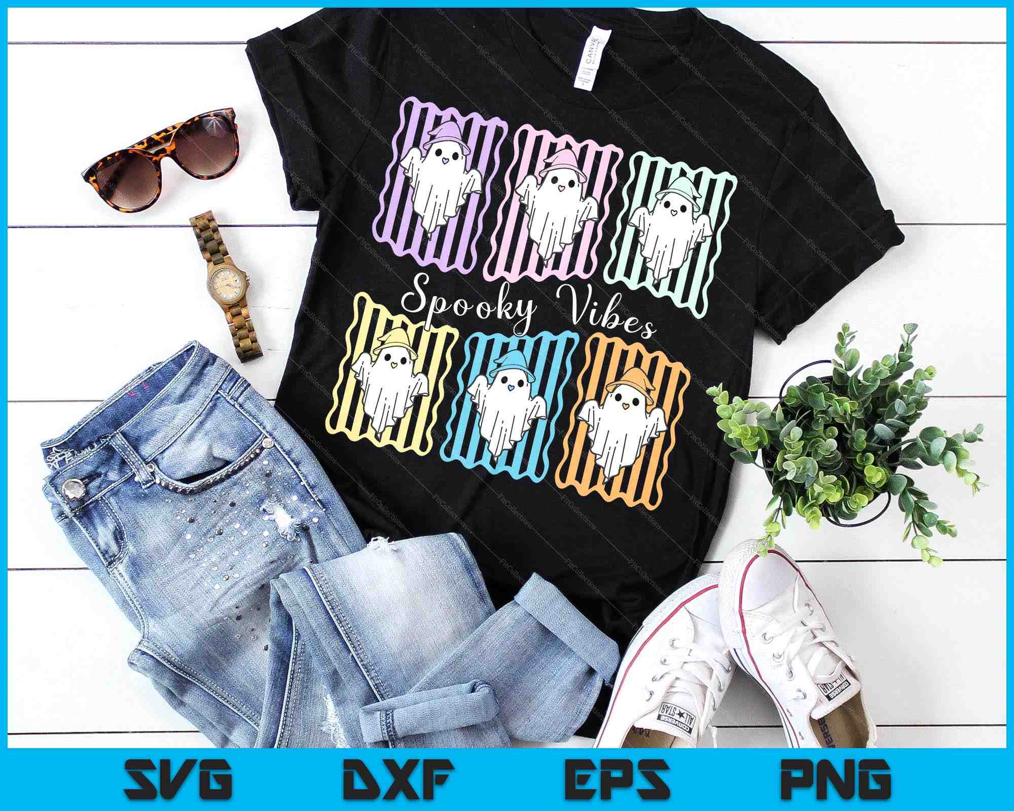 Spooky Vibes Cute Boo Ghost Trendy Halloween SVG PNG Digital Printable Files