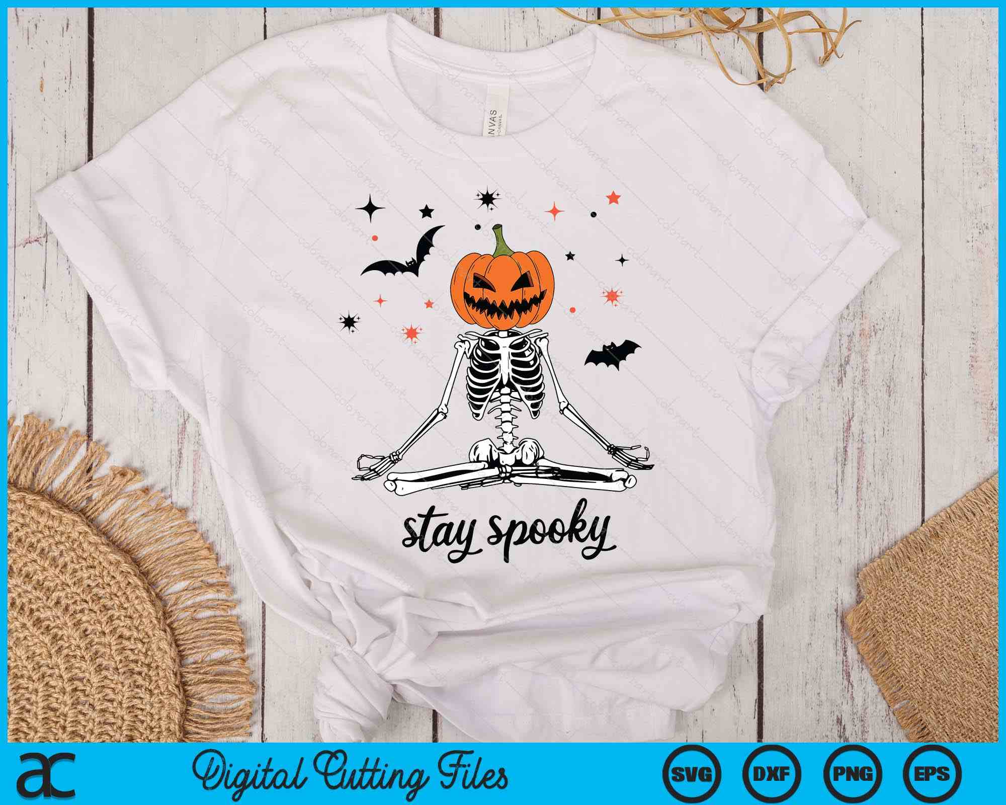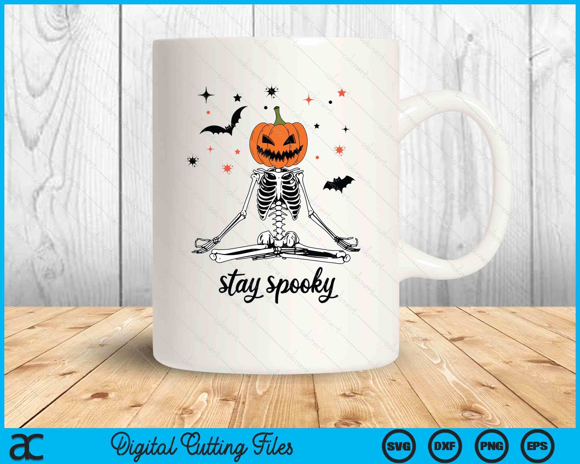 Stay Spooky Yoga Pose Skeleton Funny Halloween Pumpkin Season SVG PNG Digital Printable Files